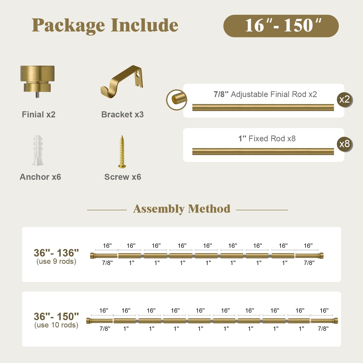 • Adjustable Curtain Rods and Brackets: Get the perfect custom fit! Our telescoping design lets you easily adjust the rod length anywhere from 16 to 144 inches, applies to window size from 72 to 144 inches. Simply slide the inner rod or remove sections as needed. Any concern about the size before purchase, please kindly contact us